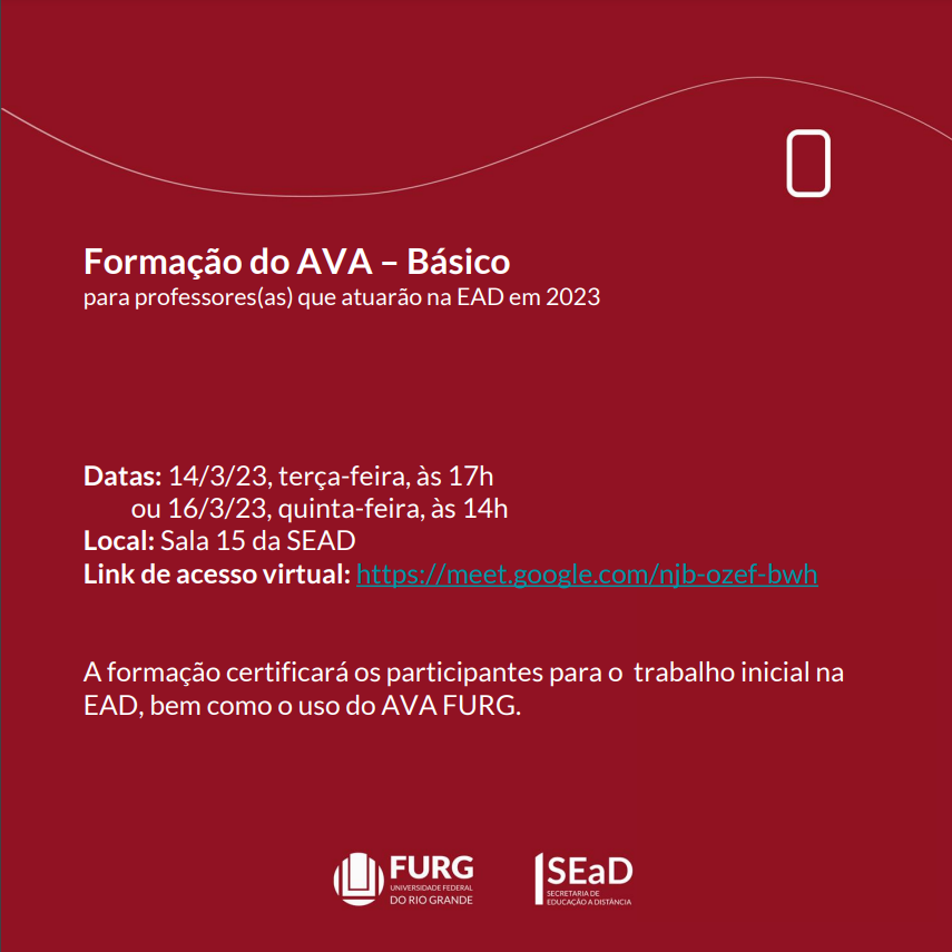 Convidamos os/as professores/as que atuarão na EAD/FURG em 2023 para realizarem a Formação do AVA-Básico.